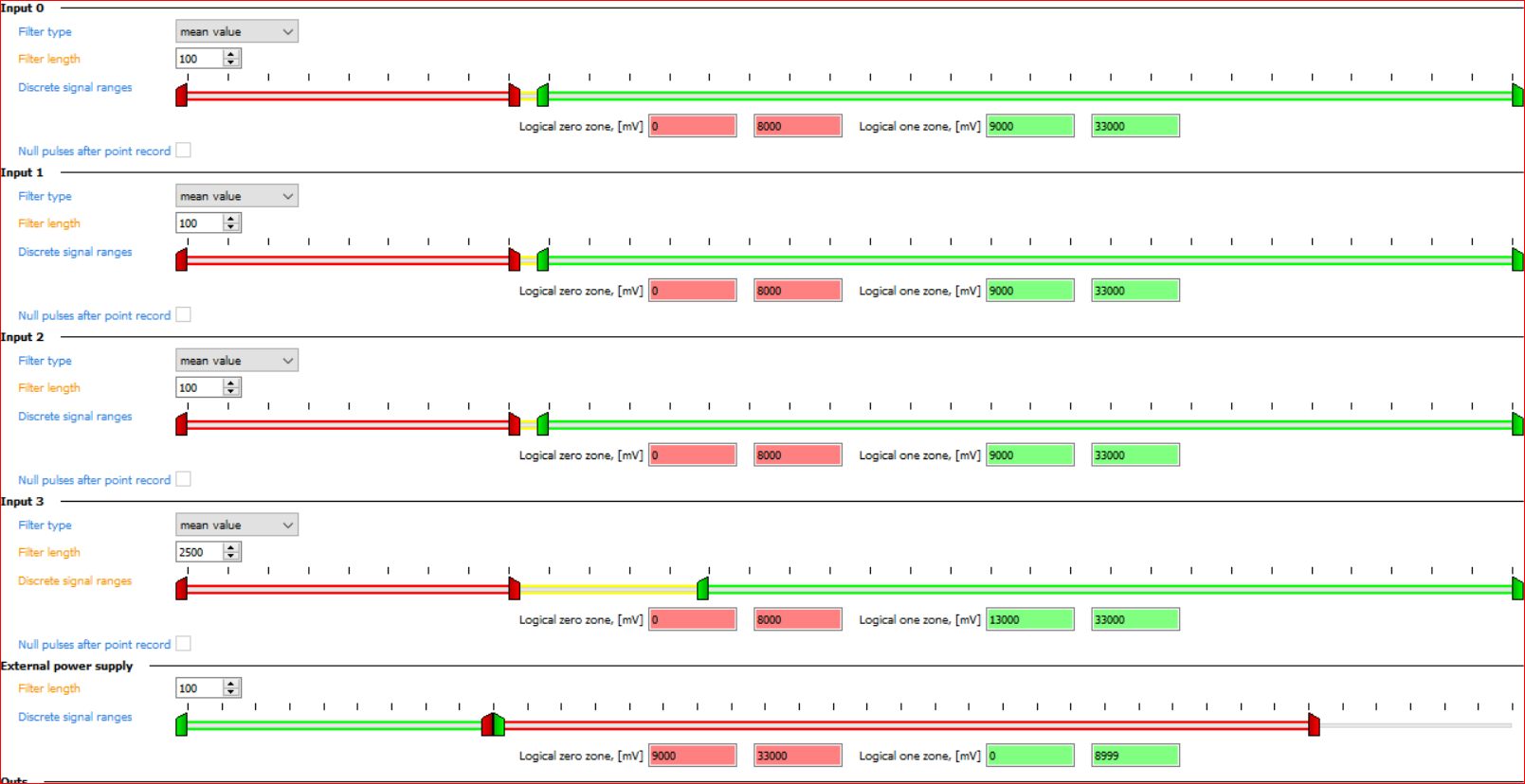 - We have established a logical zero zone defined by two values for the analog voltage input. When the voltage falls within this range ,the digital input of the port will be set to zero. Similarly, we have defined two values for the logical one zone, where the digital input of the port will be set to one when the analog voltage is within this range.