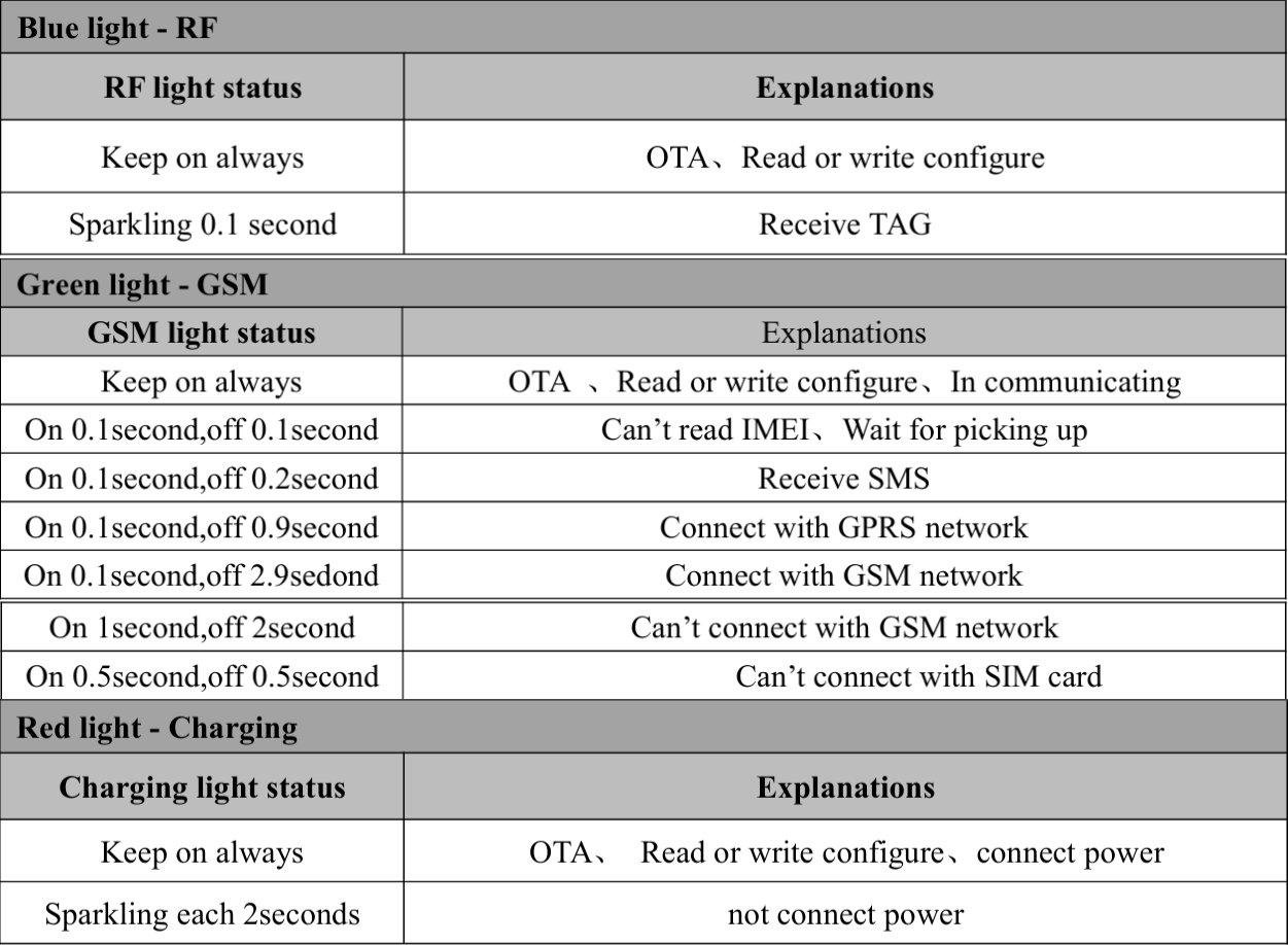 - GSM (850、900、1800、1900MHz)or WIFI connection